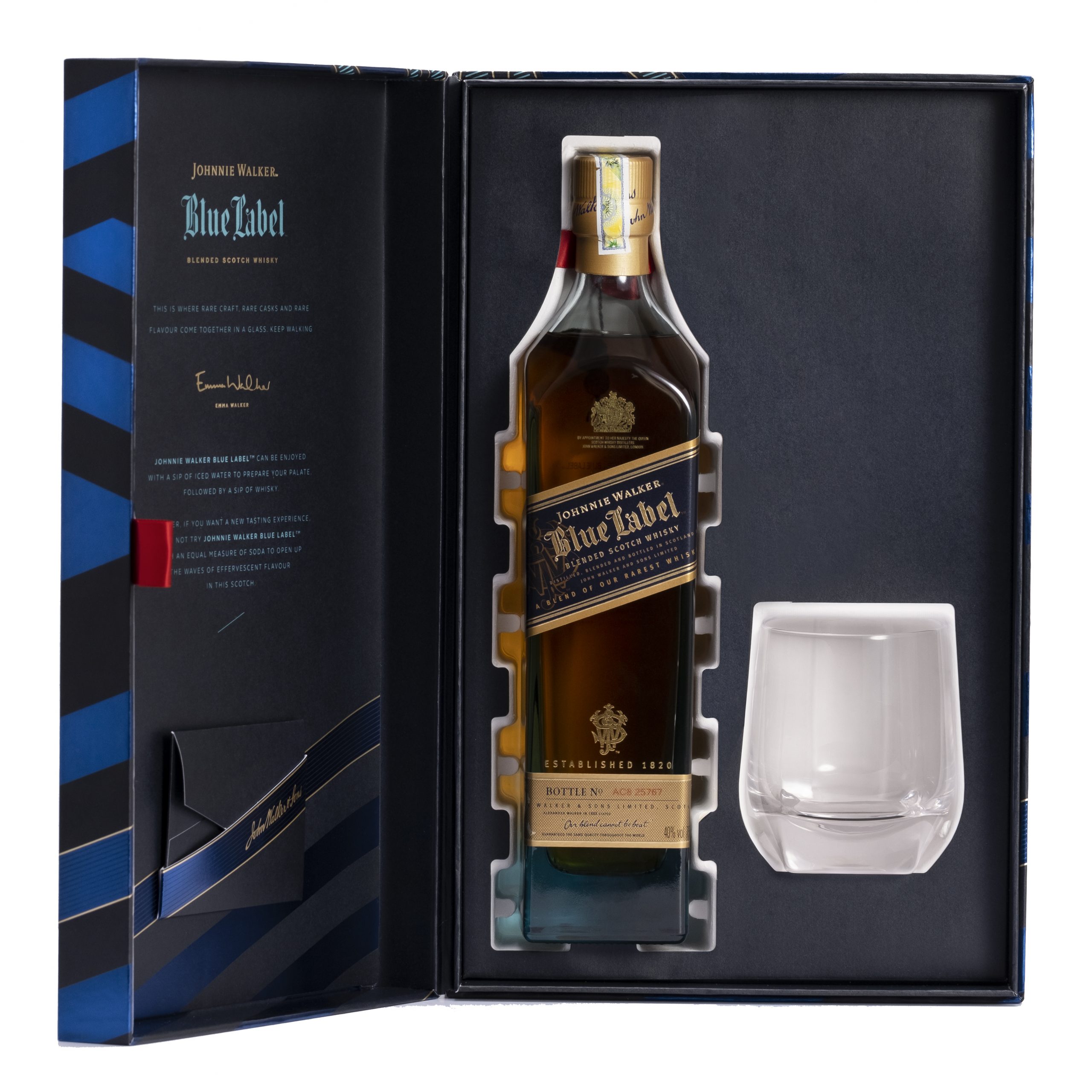 Ngay từ lần đầu tiên ra mắt vào năm 1992, Johnnie Walker Blue Label đã thay đổi hoàn toàn cuộc chơi của Scotch Whisky xa xỉ để nắm giữ danh hiệu chai whisky trọn vẹn và tuyệt hảo nhất. Chất lượng thượng hạng của Johnnie Walker Blue Label nằm trong những thùng gỗ sồi cao cấp, được tuyển chọn khắt khe, với tỉ lệ 1 trên 10.000 thùng để ra được hương vị chuẩn xác. Johnnie Walker Blue Label khai mở chiều sâu hương vị, từ mùi hương tròn đầy kích thích đầu mũi, đến chất vị cay nồng của gỗ đàn hương, thuốc lá và sô cô la đen ướp trong làn khói thơm, nhè nhẹ dẫn dắt đến cái kết kéo dài cùng khói và tiêu cay, bừng lên như một nốt nhạc cân bằng với toàn bộ phần còn lại.